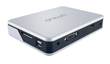 The AMILO GraphicBooster measures just 18 x 13 x 3.35cm and weighs 0.5kg. Altogether up to three external monitors can be connected at once. The pair will begin shipping in December 2008, price as yet unknown.